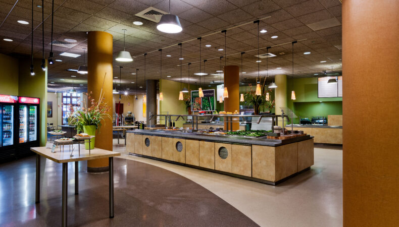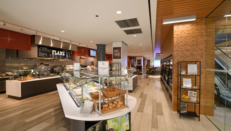 The resulting two-story, 20,000 SF store features a 32-foot curved glass façade and an ultrathin carbon fiber roof, engineered to provide solar shading without disrupting transparency. Entrances at both plaza and riverwalk levels enhance connectivity, while maintaining unobstructed visibility for office and retail tenants.