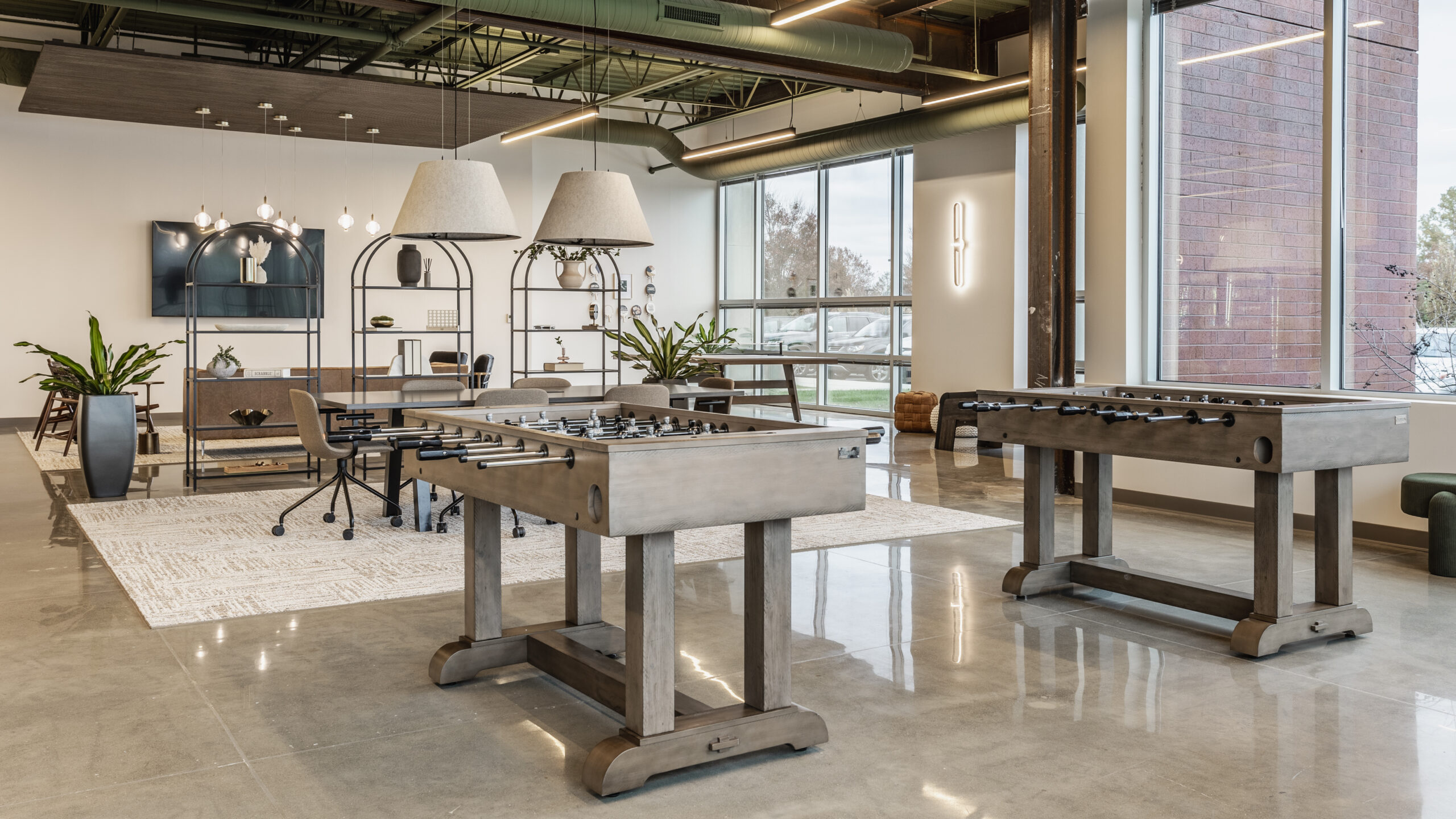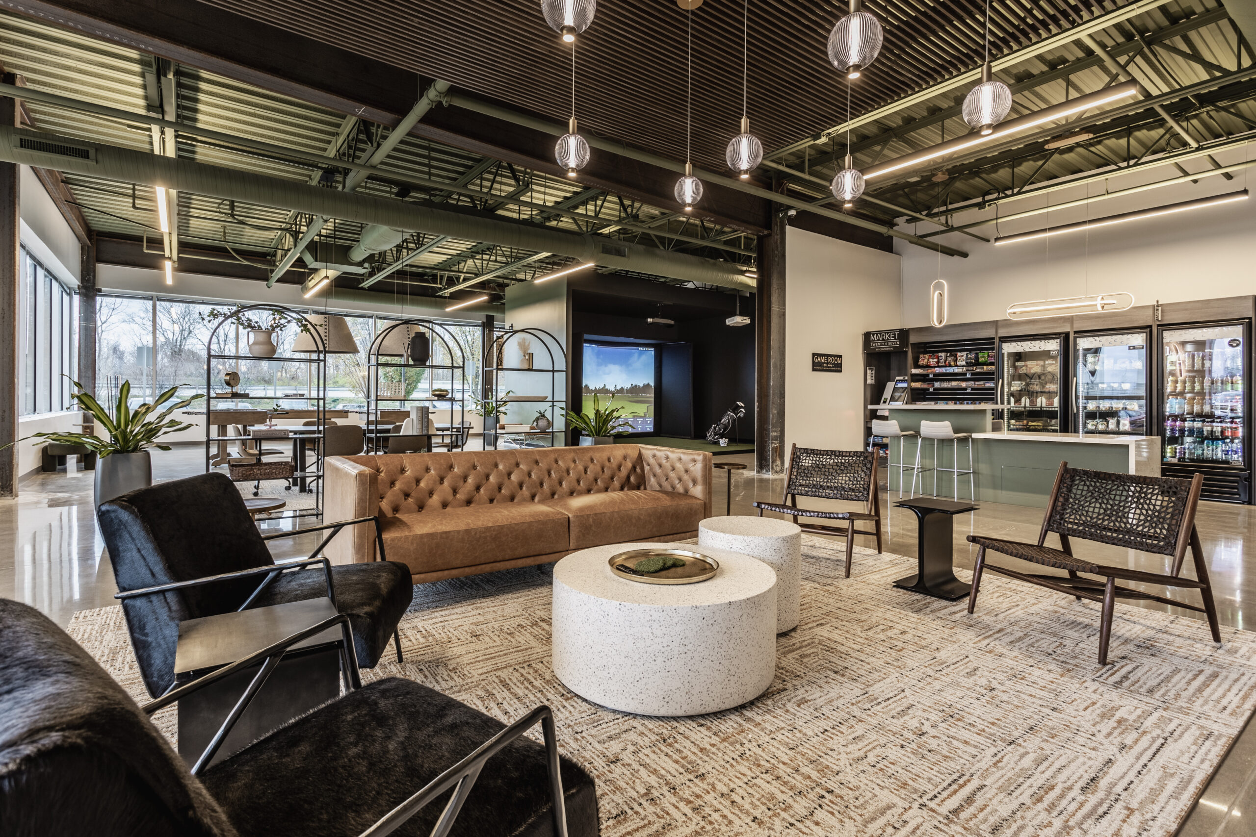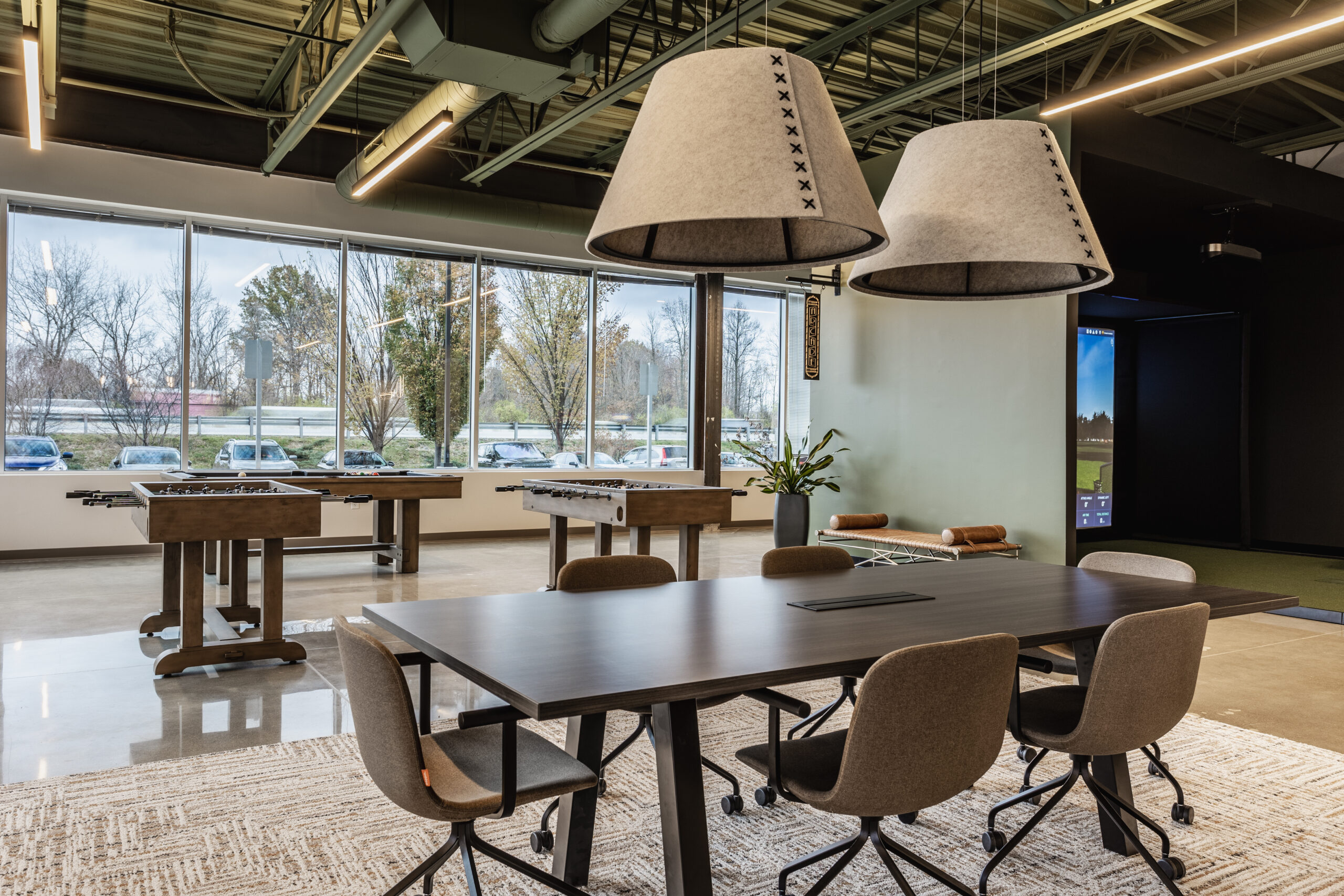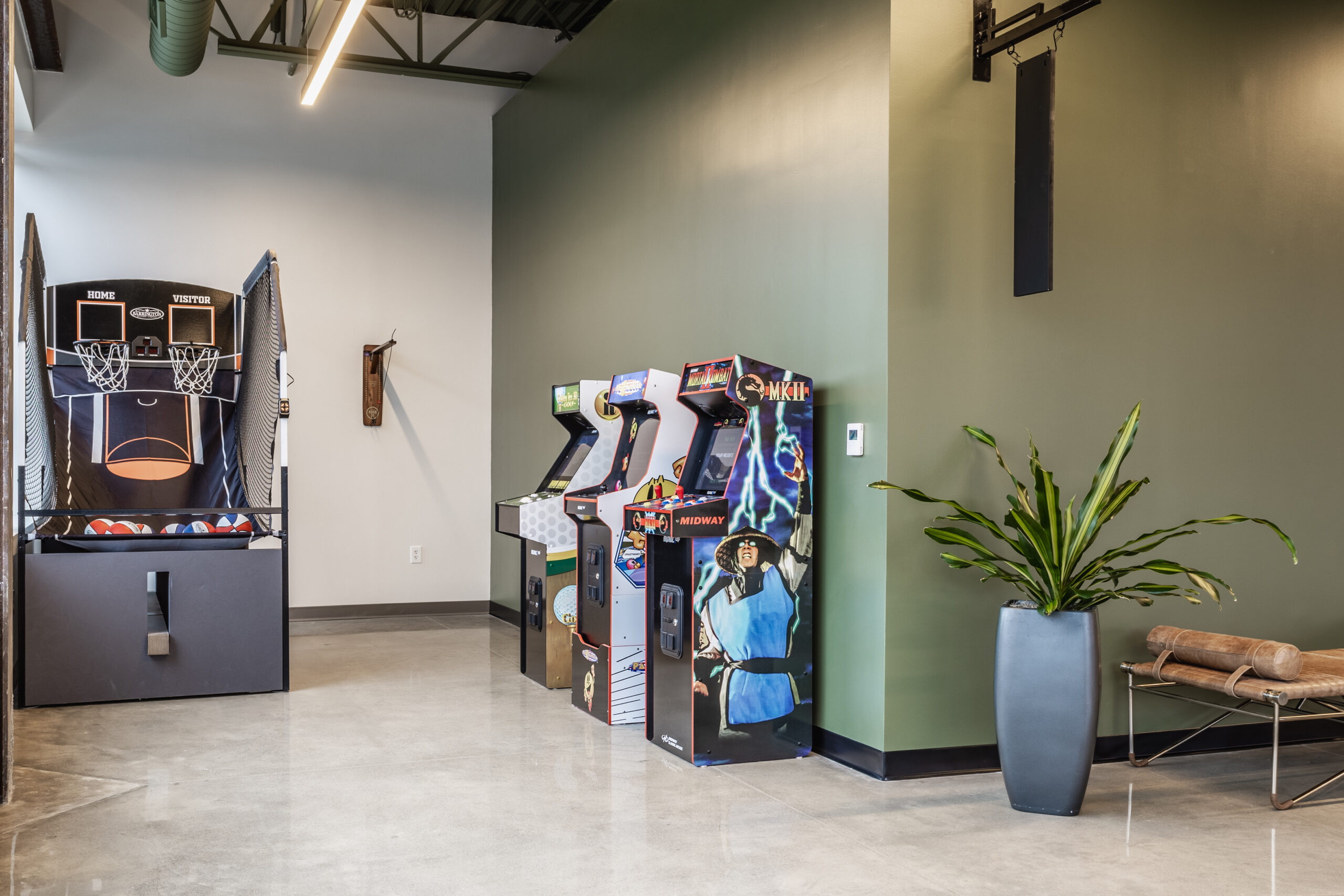 SOCIAL HUB Two Concourse recently transformed 3,000 SF of vacant space into a Social Hub offering numerous activities for tenants to enjoy including, a golf simulator, pool table, ping pong, foosball, arcade games, seating areas, vending options, and space for events